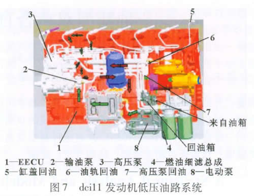 ⑵ 在发动机低压油路系统的应用。低压油路一般由油箱、输油管、油水分离器、燃油滤清器、输油泵等组成(图7),与高压油路一起称为发动机的供给系统。低压油路的管路联接系统在整个发动机系统中占据着重要作用,如果管路接头密封性能不好极易造成负压,使油路中形成气泡而造成发动机故障,同时安全性和易拆卸性也是发动机低压油路接头需要考核的重要指标。