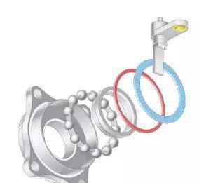 这种分体式霍尔轮速传感器的信号发生器,也就是磁性编码环(图4),通常集成在前轮轴承上。如果轴承装反或者安装时将编码环损坏,都会引起故障。