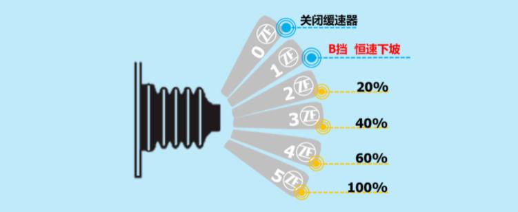 3,减速:踩刹车降低车速 — 缓速器手柄拨至0(关闭)— 再次拨回B挡、重新激活恒速控制
