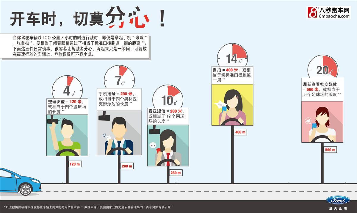 最近,由福特汽车委托进行的一项调查显示,亚太地区的驾驶者中普遍存在分心驾驶的情况,有相当一部分的驾驶者承认曾在开车过程中收发短信、吃零食、喝饮料、使用社交媒体,甚至自拍。