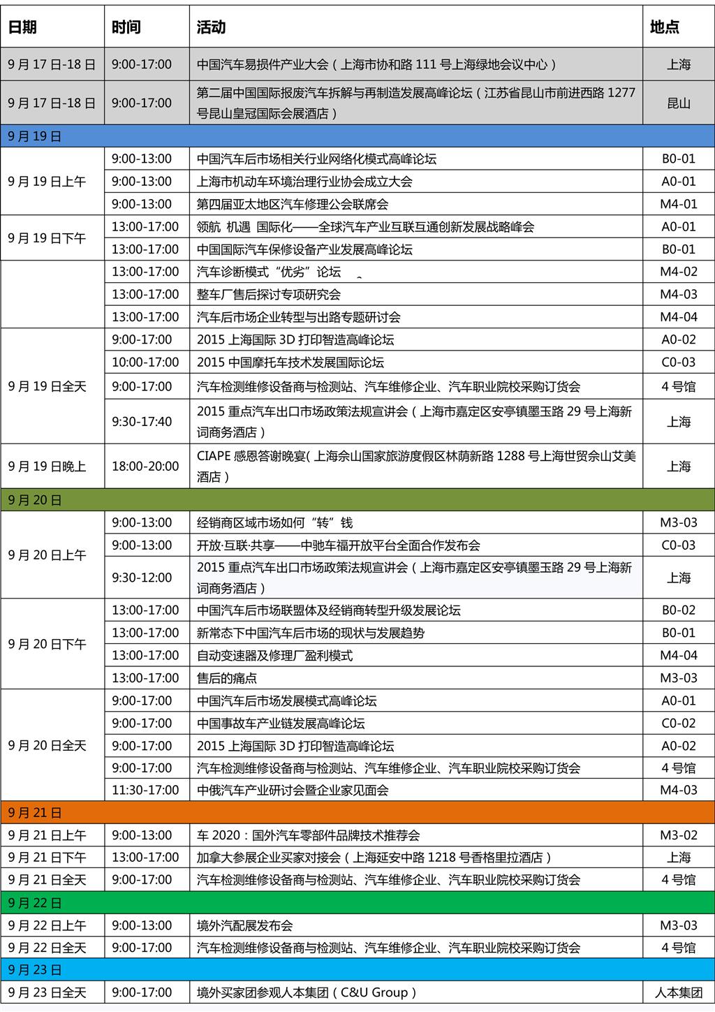 2015 CIAPE同期活动总览(活动统计截止至9月9日,点击上图可放大显示)