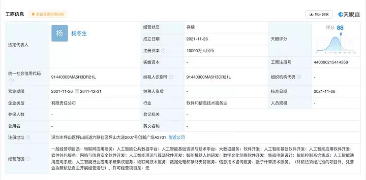 深圳市迪派智行科技有限公司成立于2021年11月26日,法定代表人为杨冬生,注册资本为1亿元。公司经营范围包括物联网应用服务、人工智能公共数据平台、人工智能基础资源与技术平台等。该公司由比亚迪汽车工业有限公司持股60%,魔门塔(苏州)科技有限公司持股40%。