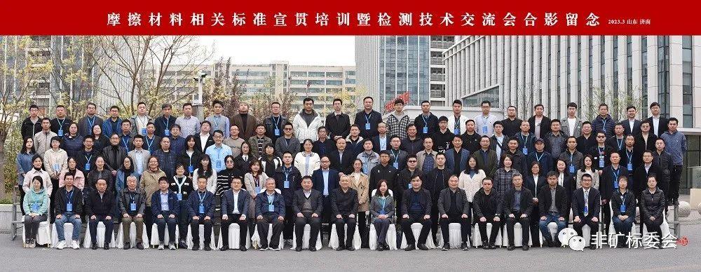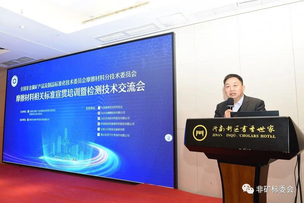 2023年3月24日-26日,由全国非金属矿产品及制品标准化技术委员会摩擦材料分技术委员会主办,咸阳非金属矿研究设计院有限公司承办,中国摩擦密封材料协会、山东金麒麟股份有限公司、山东圣泉新材料股份有限公司等共同协办的“摩擦材料相关标准宣贯培训暨检测技术交流会”在山东济南圆满落幕。中国建筑材料联合会特别副会长、中国非金属矿工业协会会长、全国非金属矿产品及制品标准化技术委员会主任委员潘东晖,中国建筑材料联合会特别副会长、全国非金属矿产品及制品标准化技术委员会副主任委员、全国非金属矿产品及制品标准化技术委员会摩擦材料分技术委员会主任委员、中国摩擦密封材料协会荣誉会长王耀,中国摩擦密封材料协会党支部书记、秘书长沈冰,中国摩擦密封材料协会常务副秘书长姜守松等领导莅临指导。来自全国摩擦材料企业、原材料企业和主机厂的150余名代表出席本次会议。