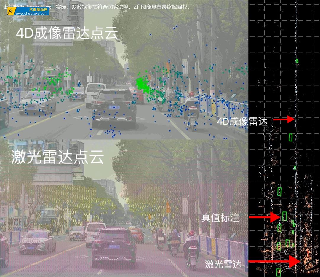 ▲采埃孚4D成像雷达带标签的数据集展示图