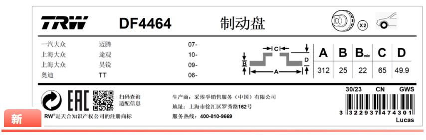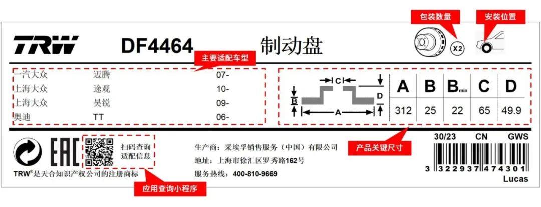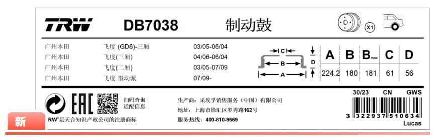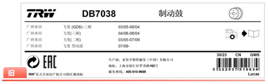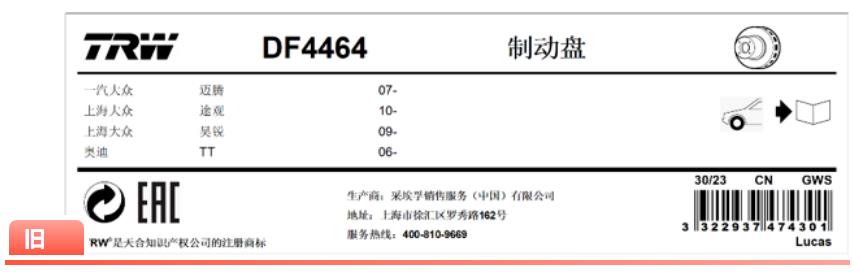 天合(TRW)制动盘和制动鼓售后产品标签变更 |