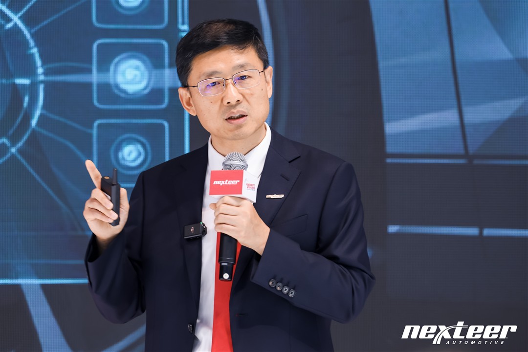 ▲耐世特亚太区先期产品战略执行总监侯峰亮在演讲阐述了公司战略,以及EMB项目的研发进展、技术亮点和产业化优势。