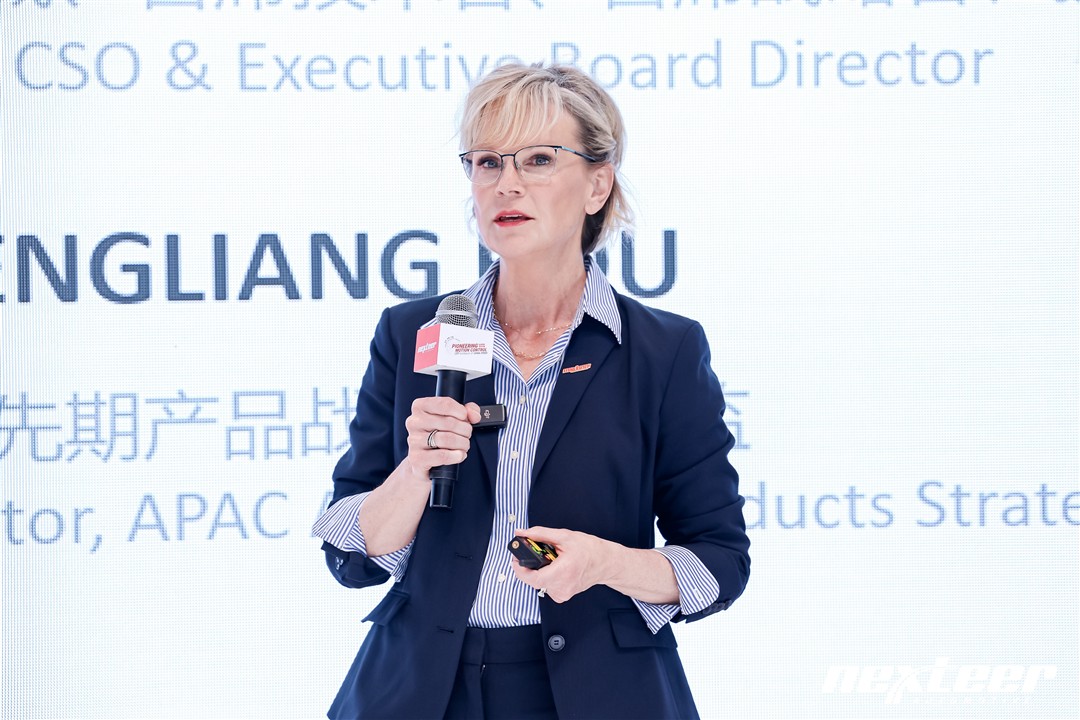 ▲耐世特集团总裁兼首席技术官、首席战略官、执行董事罗宾· 米拉韦茨 (Robin Milavec)于公司车展发布会上发表主旨演讲。