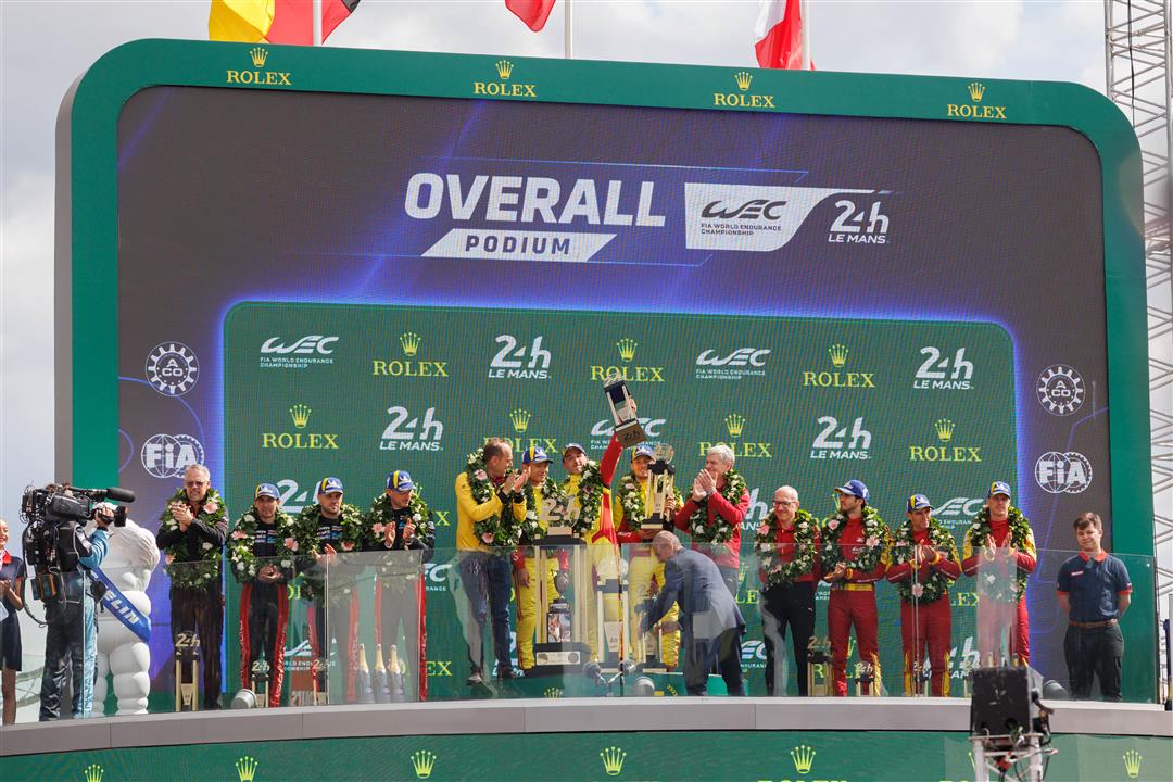 随着AF Corse车队83号车组率先冲线,米其林成功达成自1998年以来的勒芒28连胜,并见证法拉利赛车实现勒芒三连冠的辉煌成绩。法拉利车型目前也在2025年世界耐力锦标赛(WEC)中领跑,前三站全部折桂。