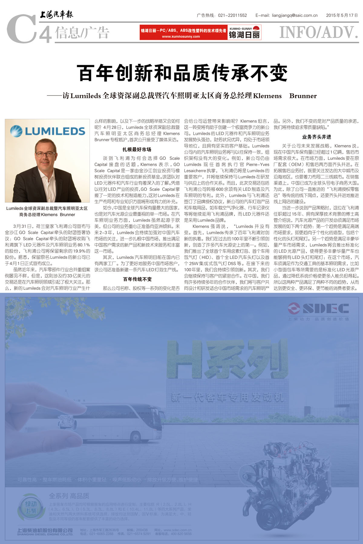 ——访Lumileds全球资深副总裁暨汽车照明亚太区商务总经理Klemens Brunner