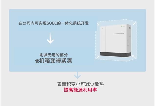 事实上,在一般情况下,SOEC的热模块和电堆都是独立开发或者外部组装,得益于电装系统化的技术优势,始终将其作为集成系统并在内部开发,整合功能上重复的内容,持续削减非必要的部分,促进产品小型化,从而避免热量流失,进一步减少能耗,逐步在性能方面取得突破。