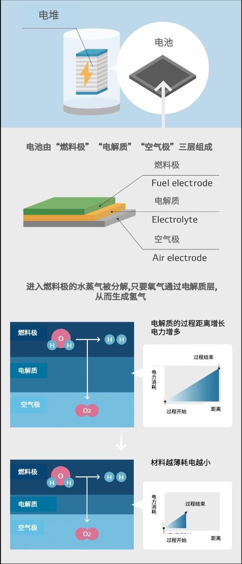 在SOEC中,陶瓷用于制造由燃料电极,电解质膜和空气电极三层组成的“电池”,然后将电池堆叠以形成电堆。