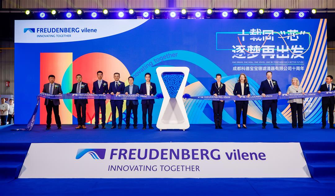 【中国成都,2023年3月13日】3月10日,总部位于德国的科德宝集团旗下空气和水过滤专家——科德宝过滤技术集团庆祝其成都工厂成立十周年。成都科德宝宝翎滤清器有限公司(后称成都科德宝宝翎),由科德宝过滤技术集团与日本宝翎公司于2012年12月合资成立。作为科德宝集团在中国西部地区的第一家工厂,成都科德宝宝翎依托科德宝集团超过170年的技术积累和日本宝翎公司的创新滤材技术,在立足企业自身可持续发展的同时,积极响应成都 “建圈强链”的发展策略,为地区经济和汽车产业链的发展做出贡献。出席十周年庆典的来宾包括德国驻成都总领事馆领事Silke Röfer女士,科德宝集团亚洲地区代表许倍帝女士(Bettina Schoen-Behanzin),成都市新都区副区长胡蓝先生,成都市新都现代交通产业功能区党工委副书记、管委会主任张启明先生以及来自其他合作伙伴和关联企业的代表。