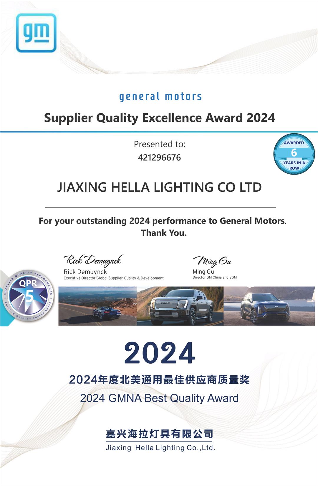 国际汽车零部件供应商佛瑞亚海拉旗下的嘉兴照明工厂再次荣膺2024年度北美通用最佳供应商质量奖。这已是该工厂连续第六年摘得此项殊荣,充分彰显了其对质量把控、卓越运营以及客户满意度始终如一的坚定承诺。