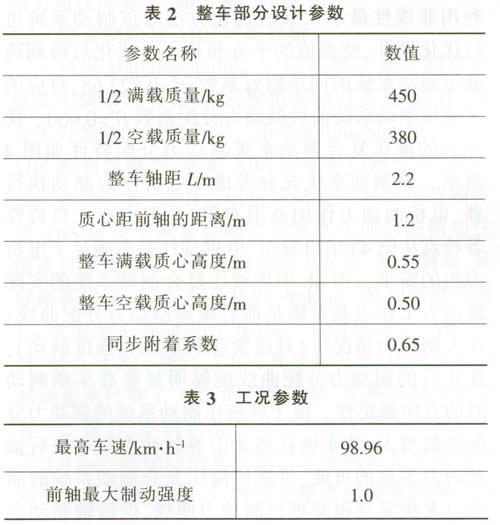 由于车辆后轮引入了可以实现回馈制动的轮毂电机,后轮制动系统增加了具有快速响应和实现正、负力矩输出功能的执行器,故该制动系统可以实现以下功能:满足驾驶员对制动力的需求;实现制动能量回收最大化:实现制动利用附着系数最大化,从而实现理想制动力曲线;提高制动时方向稳定性和舒适性。由于该类型复合制动系统设计是以制动器系统结构参数、电机特性和复合制动控制系统的控制参数为设计变量,以上述4点功能为目标的一个多参数输入、多目标输出的约束优化问题,贯穿车辆设计、试制、调试和标定各个阶段,具有一定的实施难度,因此本文仅从制动系统设计角度提出设计原则:
