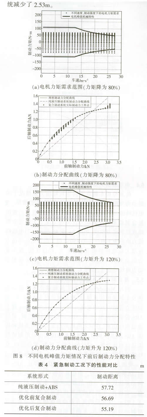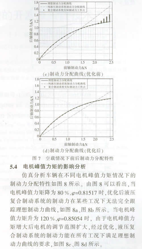d.增大电机峰值转矩从而扩大电机调节范围,能最终保证液压复合制动系统有能力满足理想制动力分配曲线,并进一步减小液压制动系统的容量。