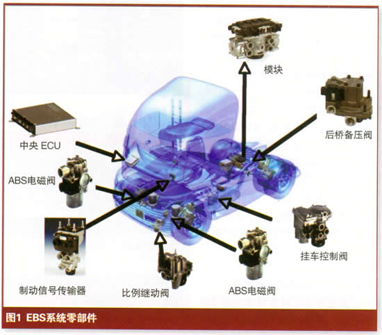 EBS控制系统为电控系统,除了包含原有的ABS及其相关功能之外,还增加了制动管理功能,其中制动管理功能是EBS制动系统最强大最先进的功能,具体体现在以下几个方面: