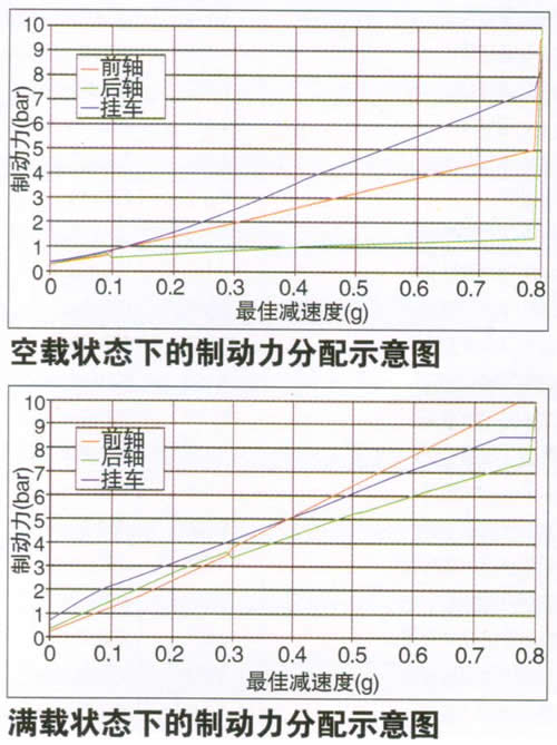 2.减速度控制功能。通过内置参数设定不同踏板行程对应不同的车辆减速度。无论车辆处于何种载荷状态下,根据驾驶员制动踏板行程的大小,输出相应的减速度。从而很好地避免了热衰退,或者轴荷变化对制动造成的影响。