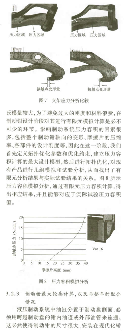 ⑴ 制动钳壳体:通过有限元计算分析(FEM),在考虑减轻重量的前提下,设计最合理的壳体形状;