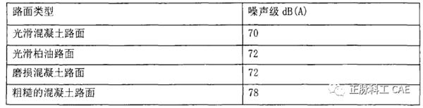 表2-1 不同路面对同一车型轮胎噪声的影响