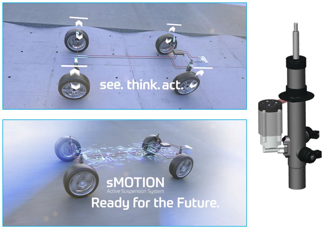 新的 sMOTION 主动减振系统是在采埃孚成熟的无极阻尼可调控制减振系统(CDC)技术的基础上发展而来。为了增强减振器的性能,它在每个车轮悬挂中都集成了一个电子液压泵。这些双向执行器使系统能够以更高的速度产生力以应对活塞杆运动。因此,虽然传统或半主动减振系统已对激振比较敏感,sMOTION 则可以以数千牛的作用力(可扩展)主动应对道路路面激振,例如坑洼或颠簸。这样能够消除车体的摇摆、俯仰、倾斜和弹跳等几乎所有不良动作。车体稳定性的改善使驾乘更加安全和舒适。sMOTION 能使你感觉就好象坐在飞毯上一样,隔离来自路面的振动,舒适性大大提高如履平地,至此这样自动驾驶使驾驶员能够移交车辆驾驶功能,驾驶员就能够关注其他活动,比如阅读、移动办公等。与采埃孚传感器、控制电子设备、激光雷达等组合起来,sMOTION 就能够参与支持自动驾驶功能。