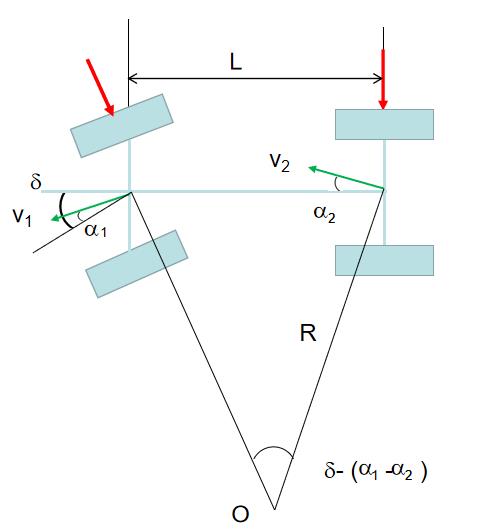 如果前轴比后轴重,那么前轴产生的侧向力比后轴大。前后轴侧向力对质心产生的合力矩使车辆向弯道内侧偏转,车辆呈现过度转向特性。