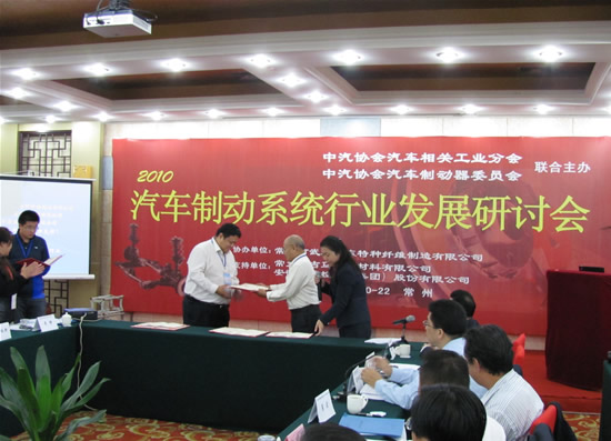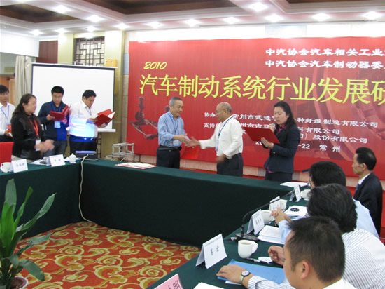 2010年10月20-22日,由中国汽车工业协会汽车相关工业分会与汽车制动器委员会联合组织召开的年度会议——“2010汽车制动系统行业发展研讨会”在江苏省常州市锦海国际大酒店成功召开。会议由汽车相关工业分会副会长蔡增伟、汽车制动器委员会秘书长顾一帆主持。
